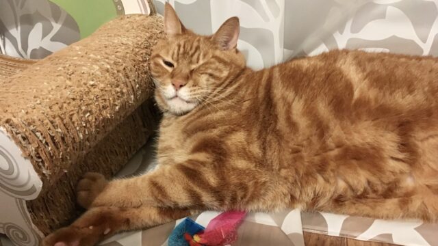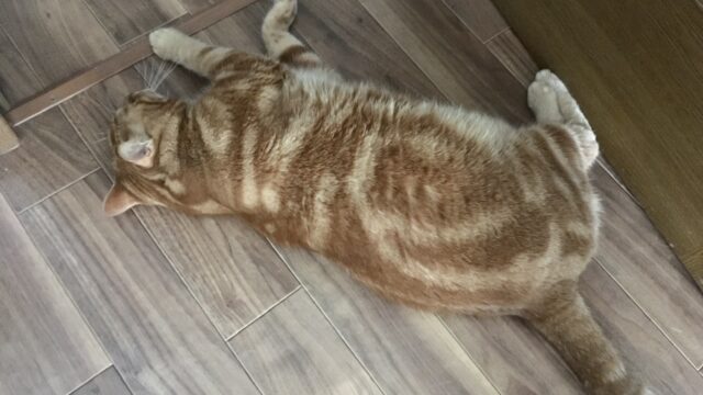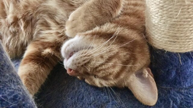 顔、めり込んでるよ…!?猫が柱に顔をくっつけて寝る理由(Day2503_10/8)