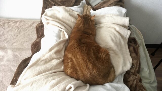 人間含め、動物にとって腹部は大事な臓器が集まっている場所。そこをこんなにおっぴろげてくるむぎの我々への信頼をうれしく思います。