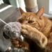 そしてここにちょうどよい高さの台があることで、収納ボックスへの侵入を試みるむぎさん。