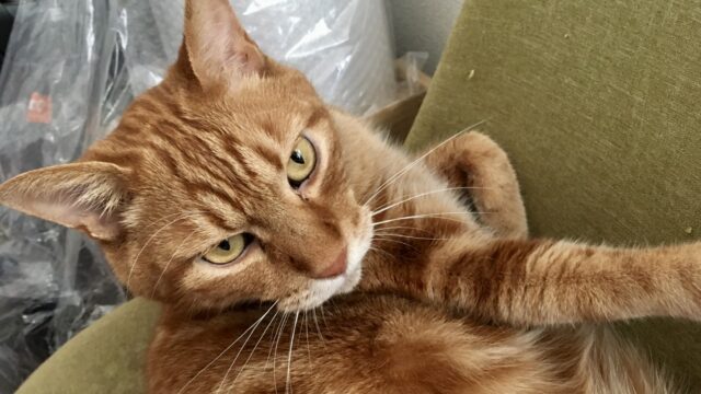 カーペットに座って作業をしていたところ、頭の上で何かが動くのを感じました。