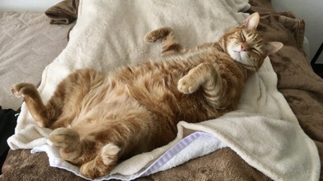 体調が悪い時はヘソ天をしないので、こうしてヘソ天姿を拝めることをなによりうれしく思います。