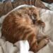 出張翌日は出社する予定があり、準備を始めるとベッドで丸まって寝ていたむぎさんが起きてにゃーにゃーと騒ぎ始めました。