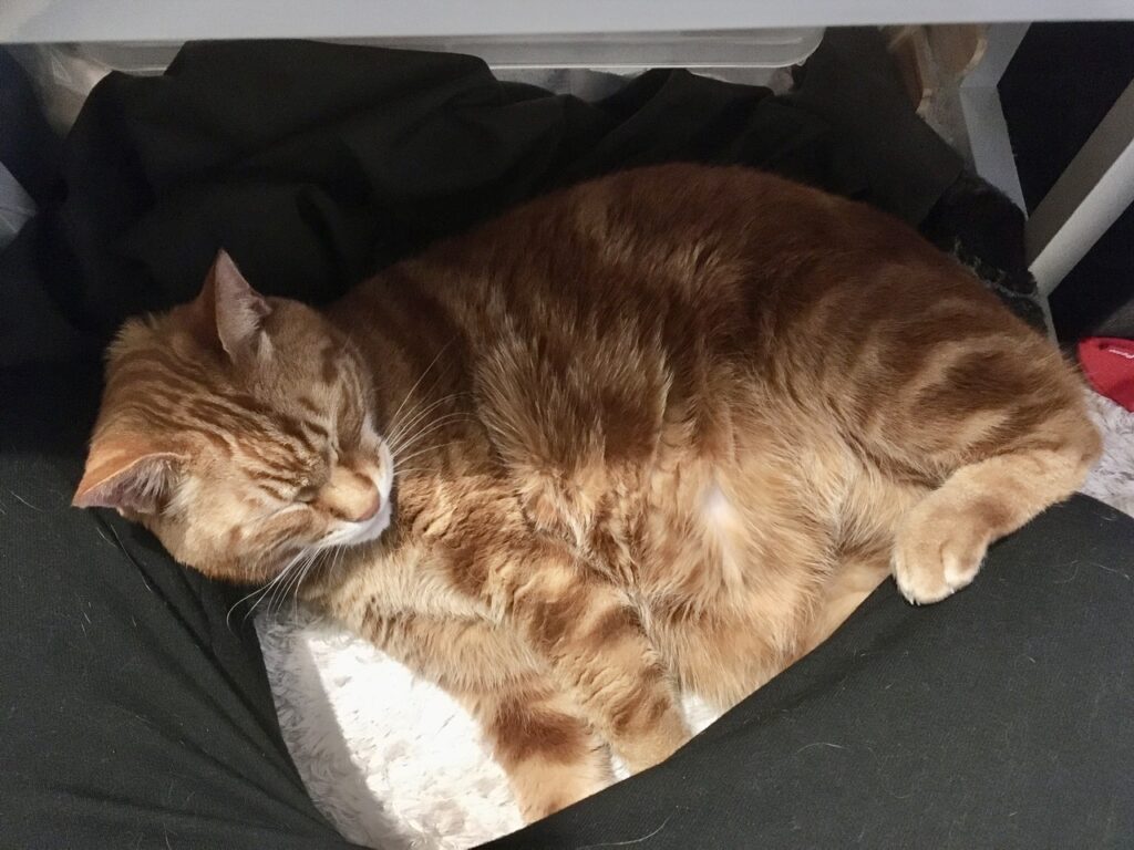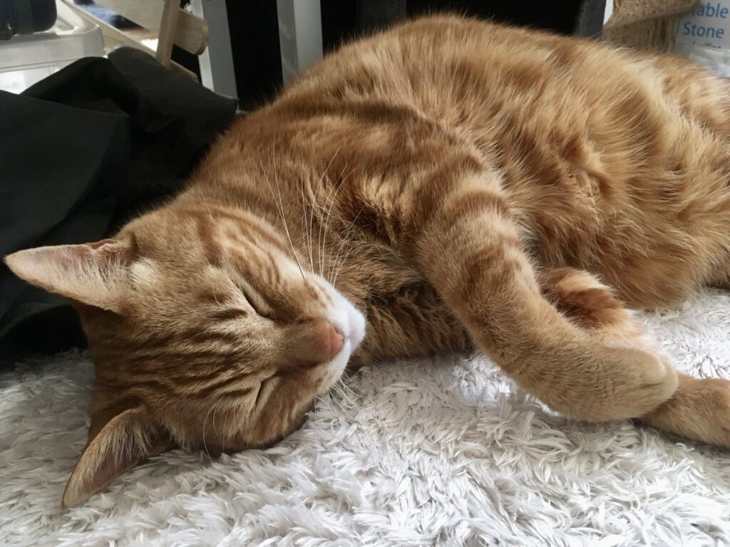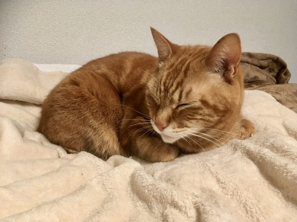 しかし金曜の夜は寒かったですね。エアコンの温度もいつもより2度上げました。むぎさんが寝ている下には電気あんかが稼働中。