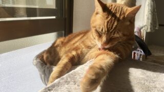 むぎさんはブラッシングしつつ、加湿器がないので濡れタオルを部屋干ししてしばらく対応してみます。