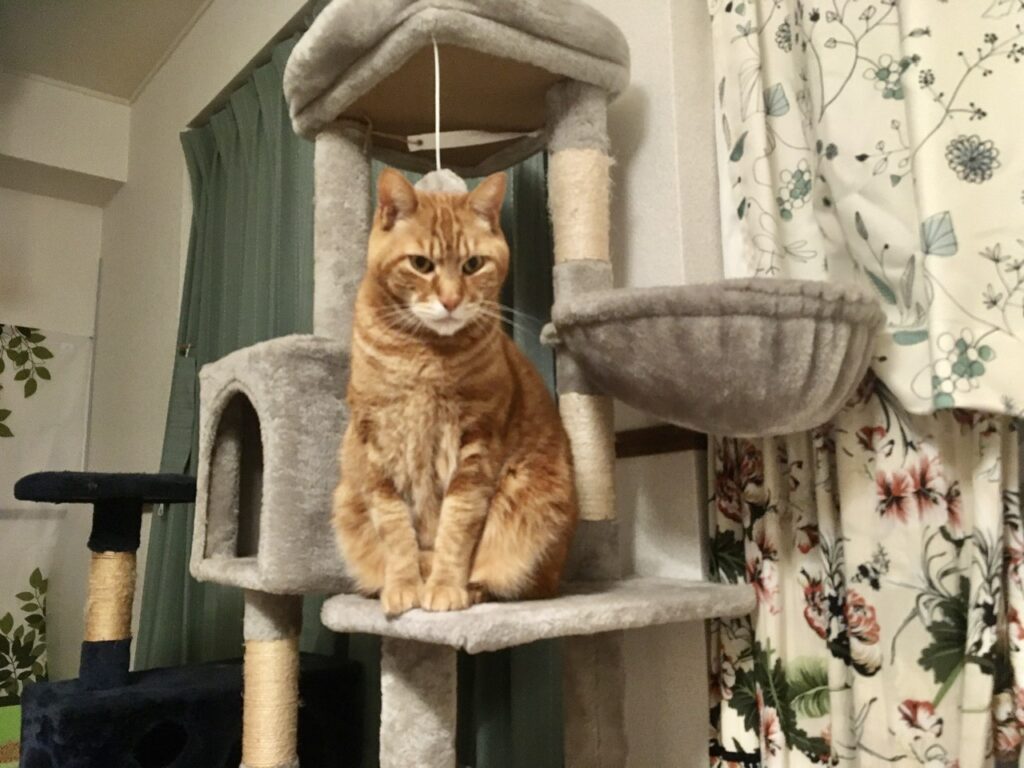キャットタワーに登りこちらを見る姿からは「なんでだよー」と言われている気持ちになりました(笑)