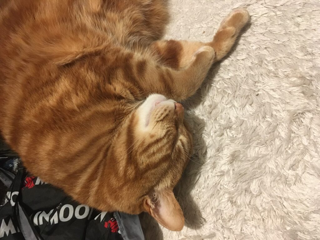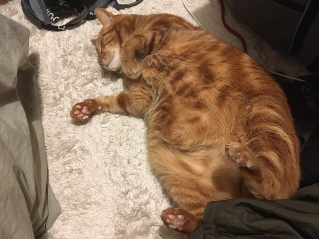 その後も夜までむぎさんはほぼホットカーペットの上で過ごしていました。