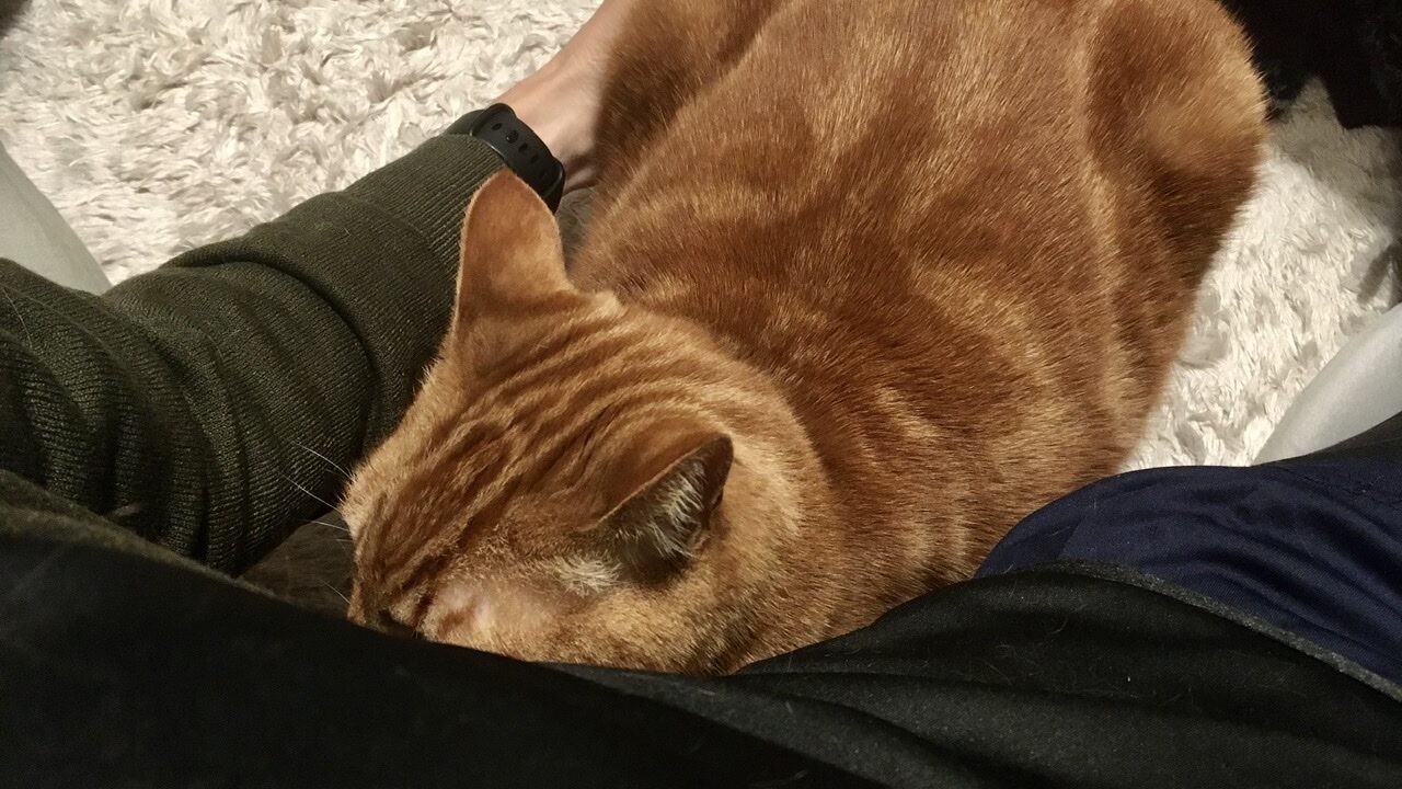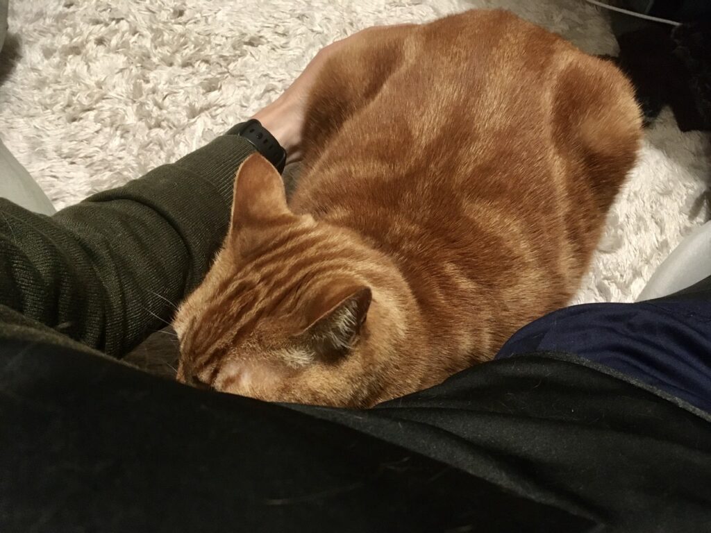 肌寒いけど愛猫がくっ付いてくれてうれしい