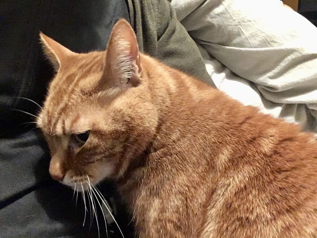 小脇にくっつき、ぴたっと私に体をあずけてくるむぎさん。「今日、なんだか寒いにゃ」という声が聞こえてきそうです。