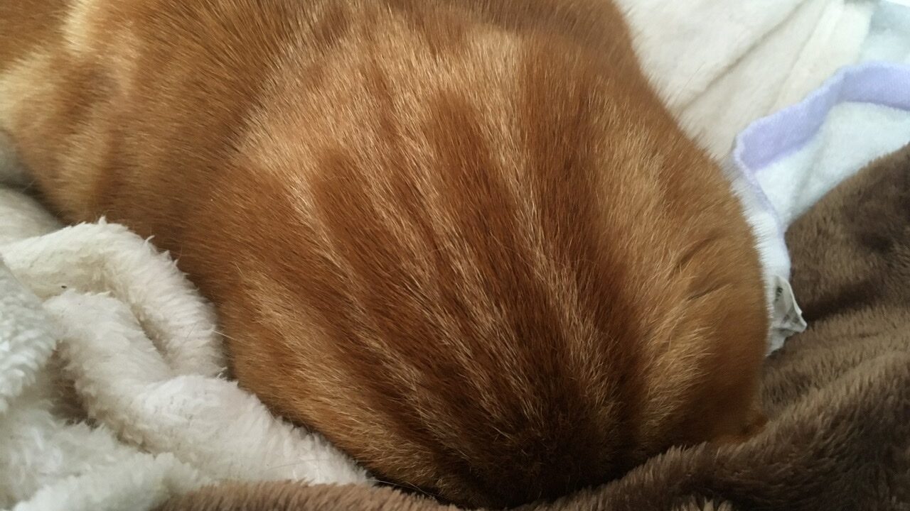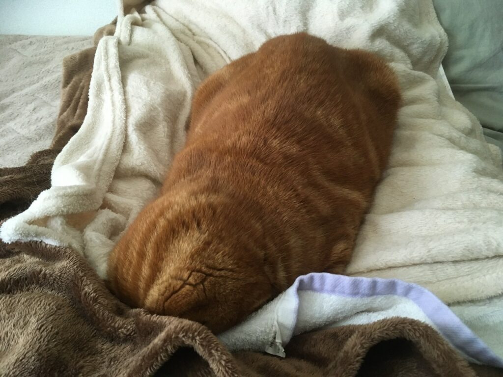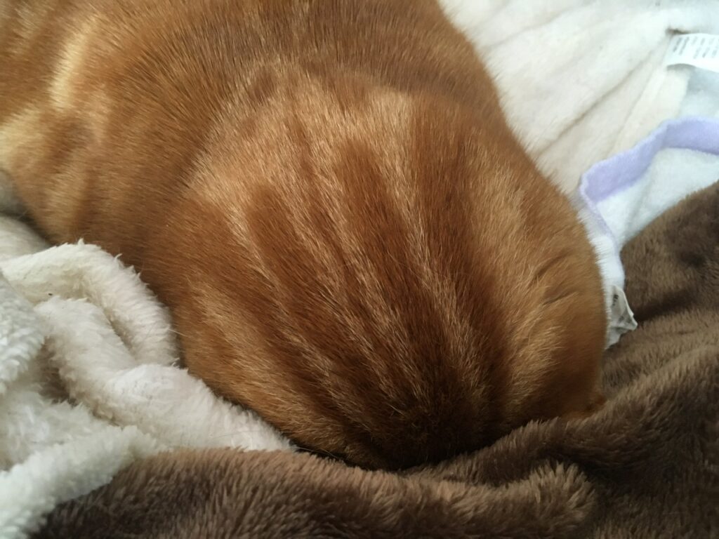 「猫型ロボットって言うけど猫の頭はそんなにまん丸じゃない」と思っていましたが、実際まん丸でした。藤子先生も布団にめり込んだ猫を見たのかな。