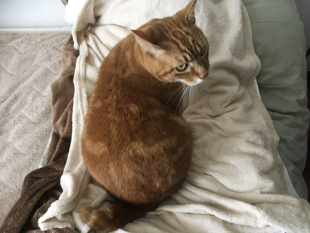 すっかり朝明るくなるのが早くなりました。たぶんむぎさんは二度寝後だと思いますが、ここ数日は私が起きた後でむぎさんが起きるパターン。