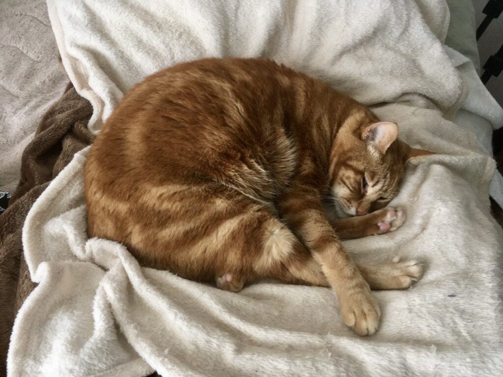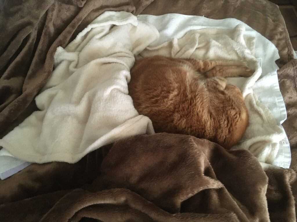 思い返すと、最近寝る時間が長くなったような気がします。朝起きる時間が近くなったからそう感じるのかもしれませんが、むぎさんももうすぐ7歳でシニアに片足を突っ込む年齢。