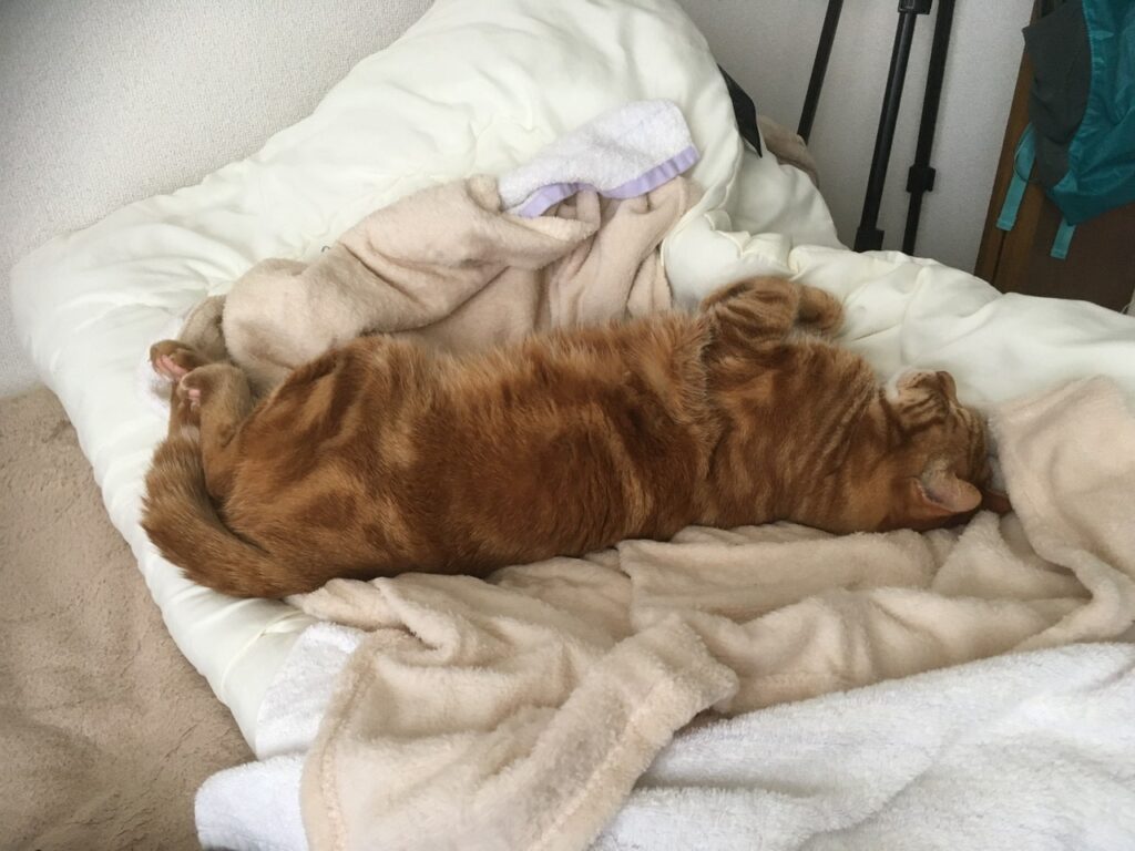 ちなみに布団カバーを洗うために外しておいたら「にゃんかいつもと違う!」と文句を言っていました(笑)