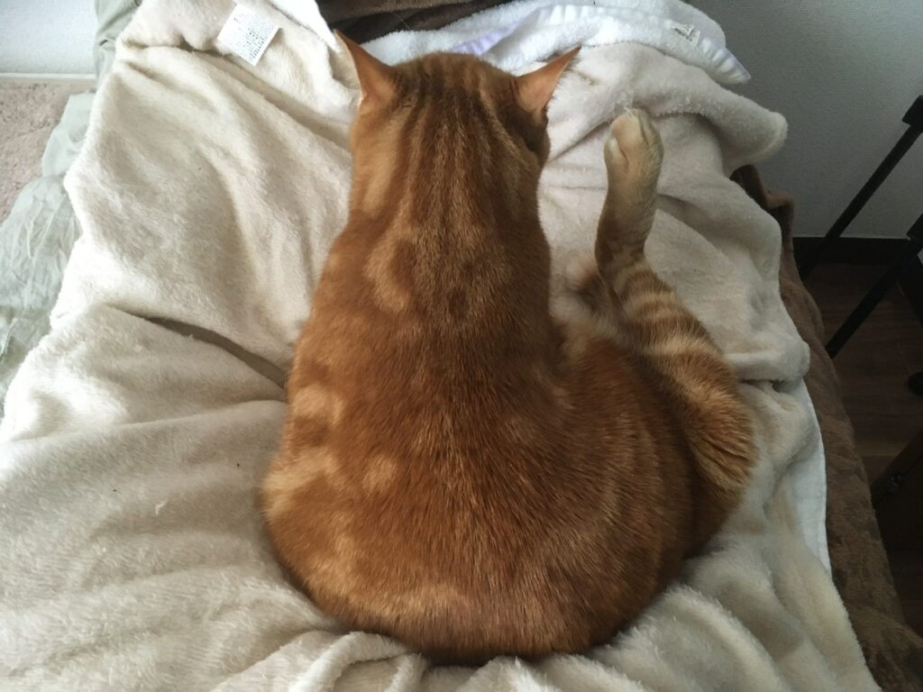 大きめの洋猫の血が入っていると推察しますが、こうやって布団の大部分を占めているところを見ると改めて「でっかいなあ」と感じます。