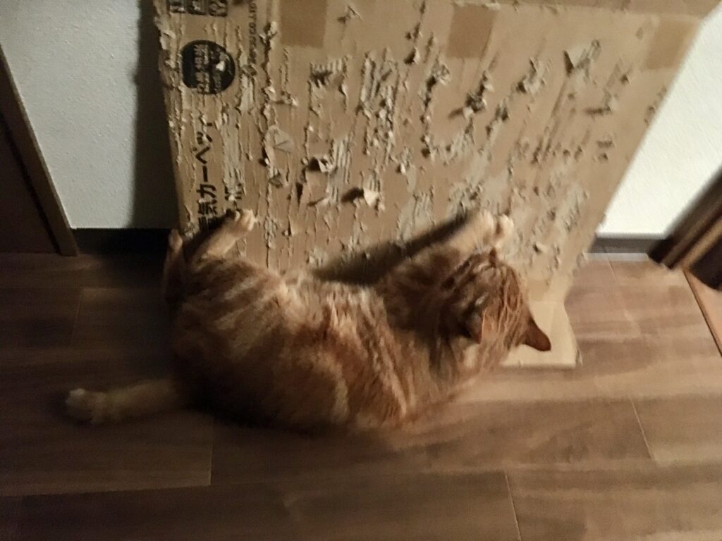 あと、そろそろこの段ボールを新しいのに交換したいです。でも変えたら変えたで爪研ぎしなくなったりして。
