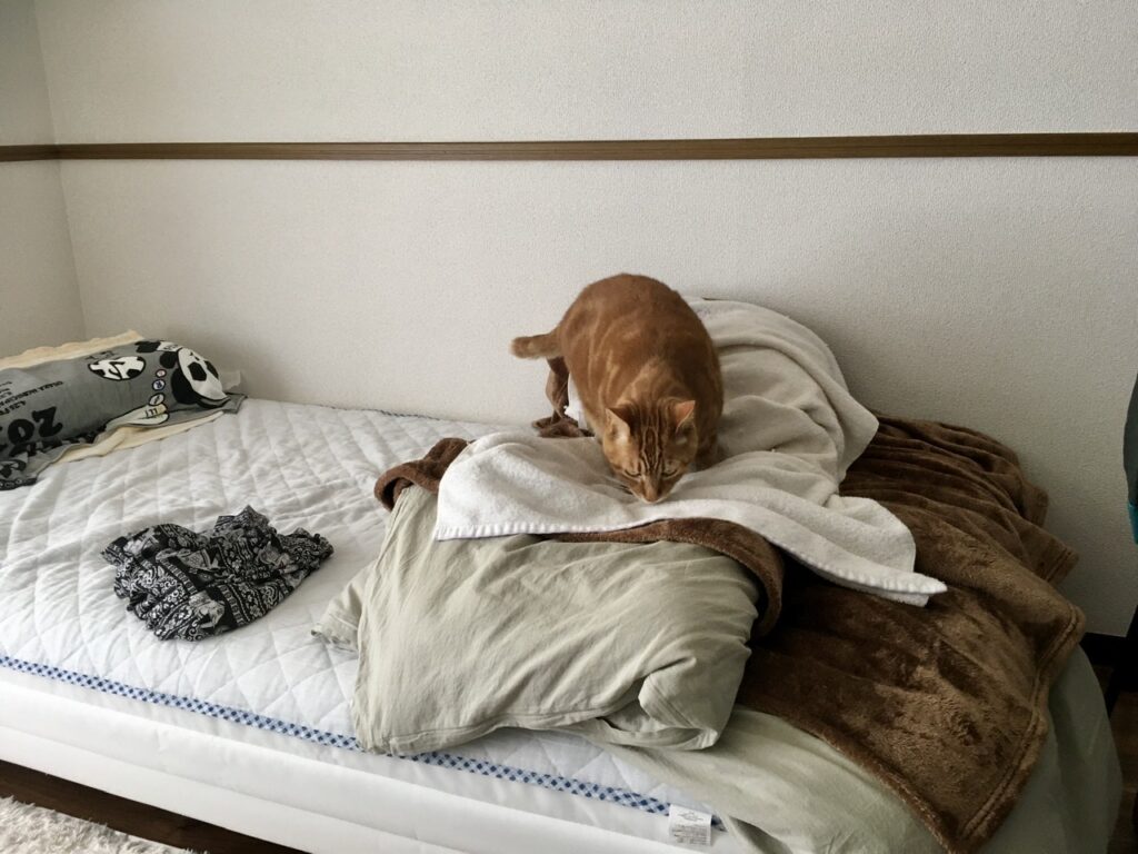一度離脱するとなかなか夜の布団には戻ってきてくれないですね。夜の方が寒いと思うのに何が違うのだろう。