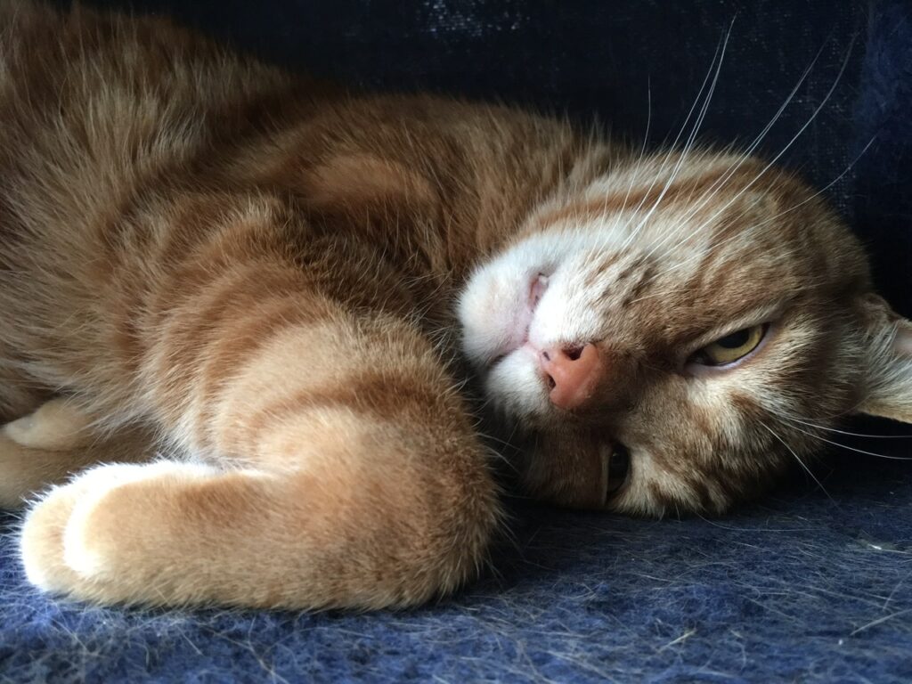 起きてきたむぎさん。こうしてみると毛がスッキリしてきたかも。