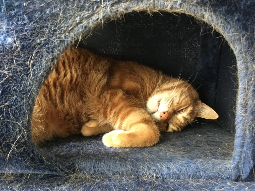 冬はあんまりここで寝ないので、むぎさんにとっては暑い時にここが居心地よく感じるようです。