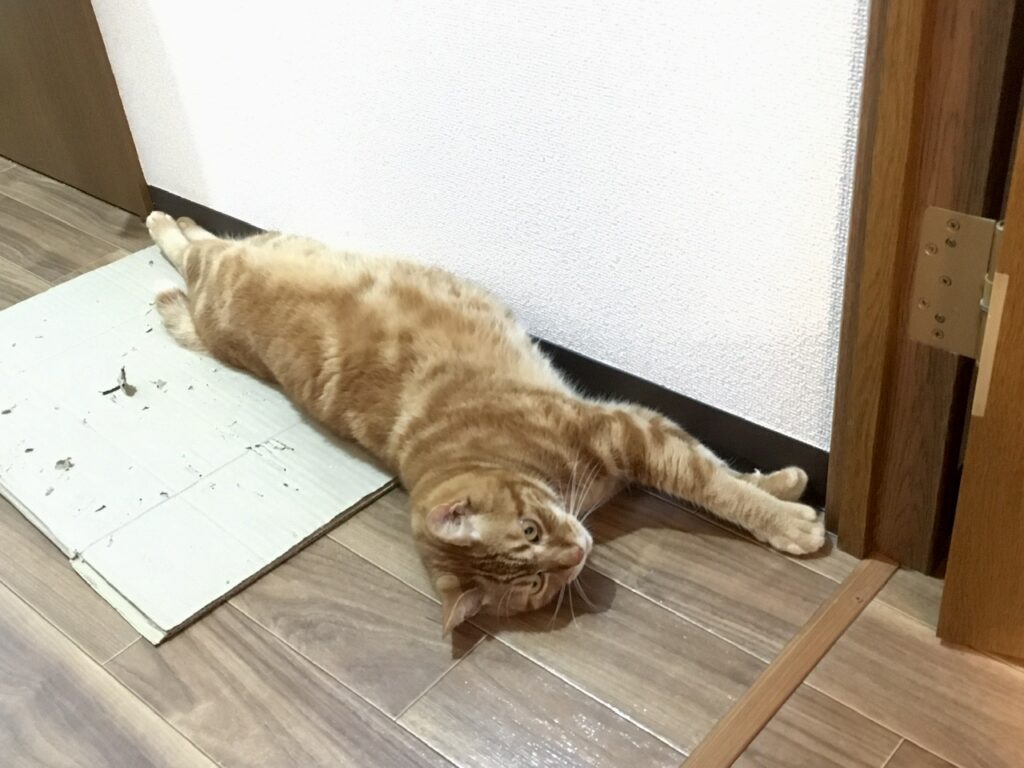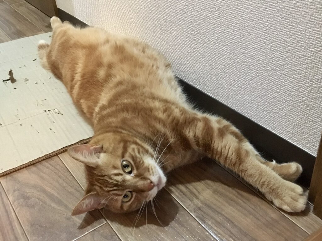 床に寝転ぶといいにゃ