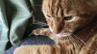 最後にベッドの匂いを嗅いでフレーメン現象に至ったむぎさん。何か臭かったのでしょうか…。でもその辺はむぎさんがいつも寝転がる場所だよ…?(濡れ衣だったらごめん)
