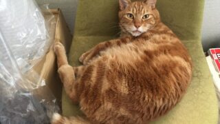 何の気なしに覗いたむぎさんの様子。あれ?いつもの椅子で寝ていない…?と思ったらこれです。