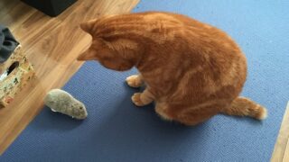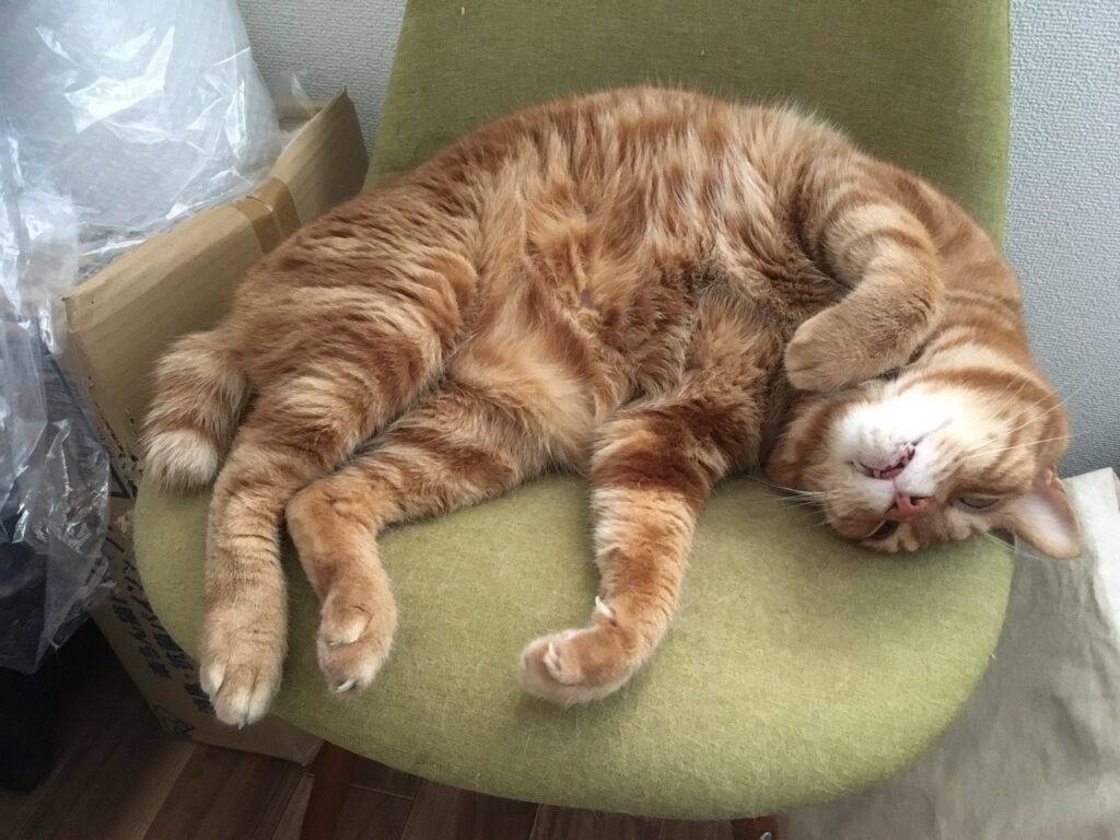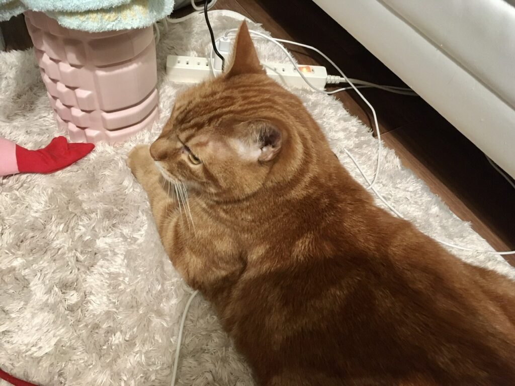 爪とぎがままならなくなってくると巻き爪になったり伸びた爪が肉球に刺さったりしてしまうのですが、そういったことがなければじゃれた時にかいぬしが痛いとか、壁や家具が傷つくとかの程度ですしね。しばらくはむぎさんのセルフケアにお任せします。
