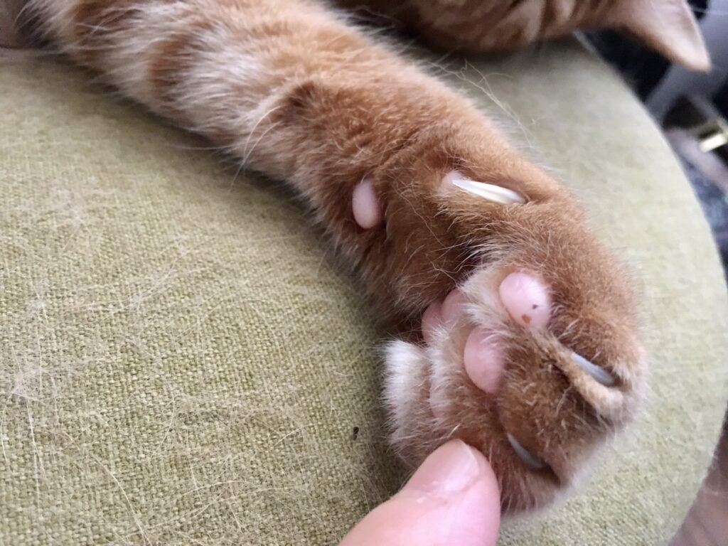 それは猫にとっても同じようで、むぎさんの爪もシャキーンとニョキニョキ伸びています。