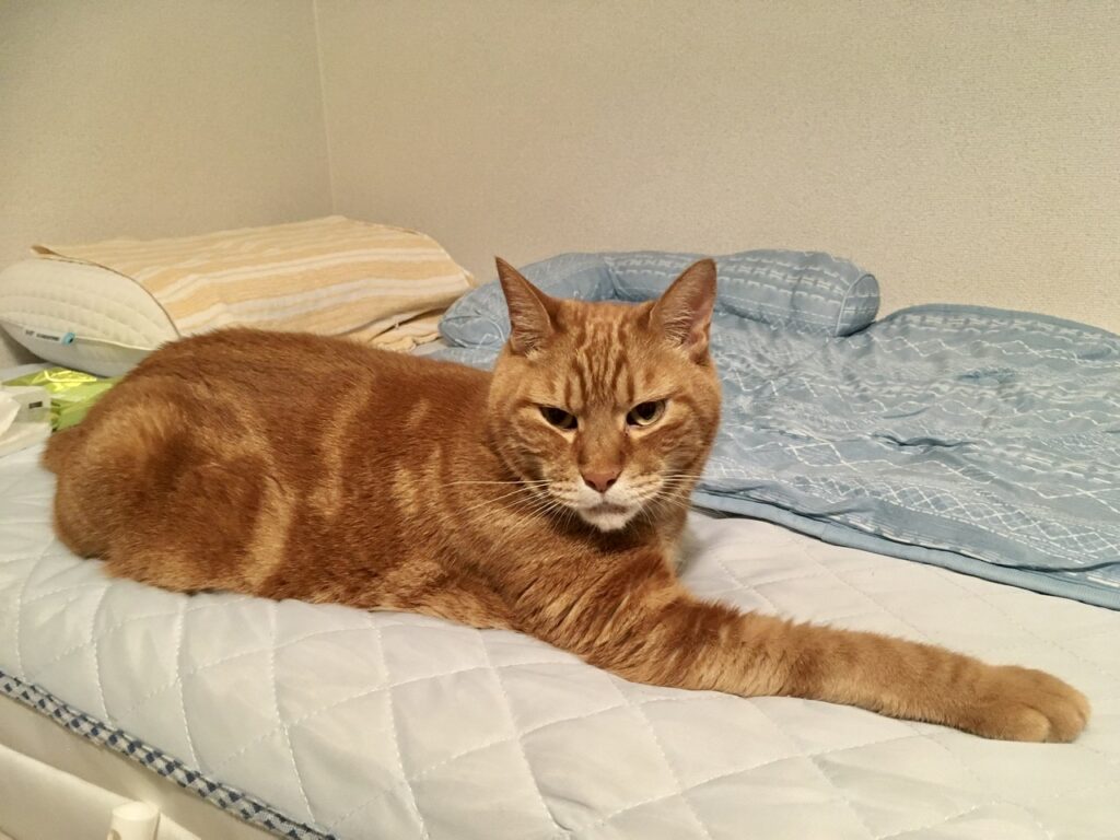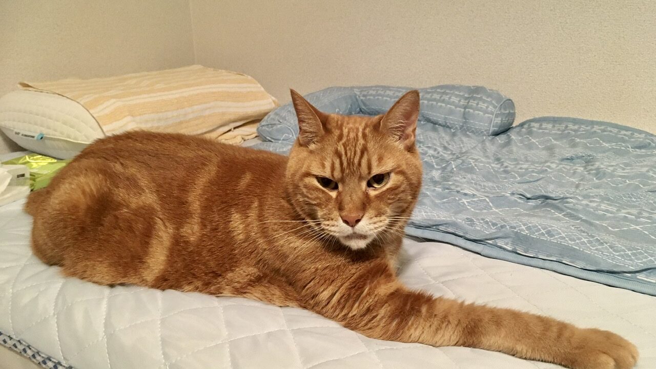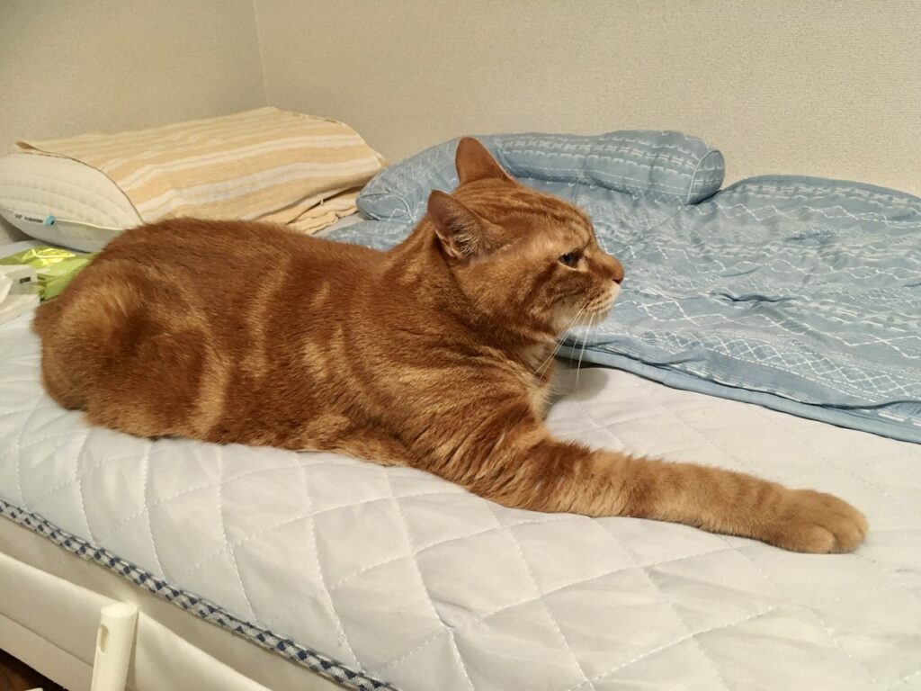 なので夜〜深夜までベッドの所でパソコンをカチャカチャしていたところ(先方も夜中まで確認させて申し訳ない)、むぎさんが心配そうに「んなぁ〜」と言いながらベッドに乗ってきました。