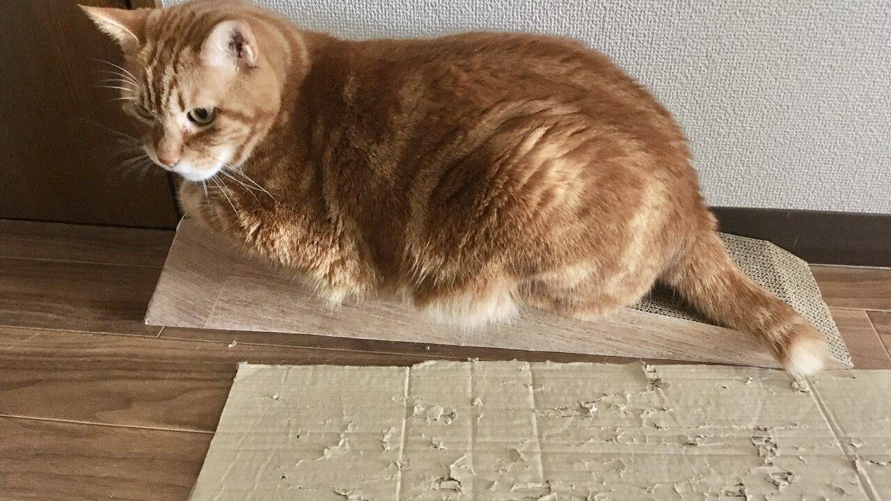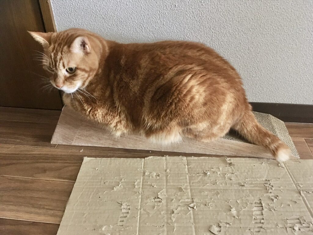 ちなみに出る直前だったので相変わらずむすっとモード。ごめんよう。でも爪とぎ使ってくれていてうれしいです。