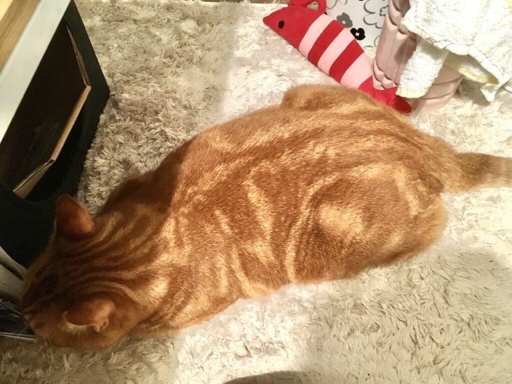 台風の影響で大雨となり、久しぶりに涼しさを感じる日でした。ただやはり湿度は高かったですね。iPhoneの天気アプリでは湿度98%の表示。むぎさんもご覧の通り、気温が下がってもウキウキと言う感じではなさそうです。