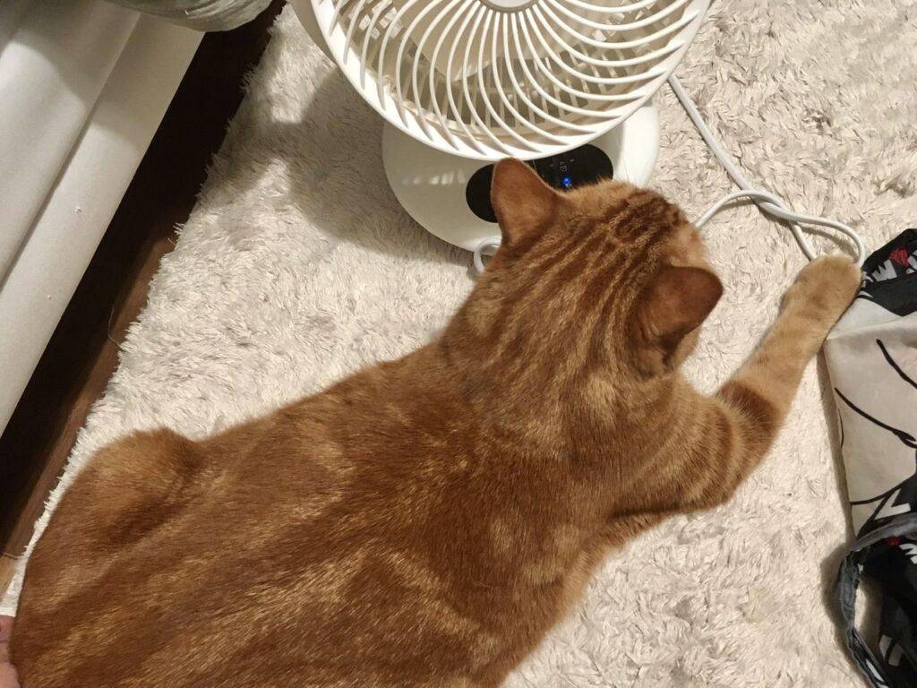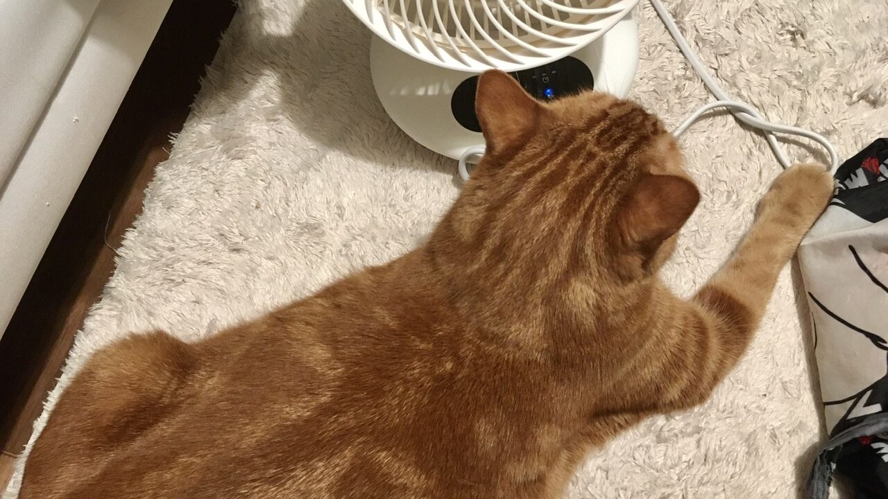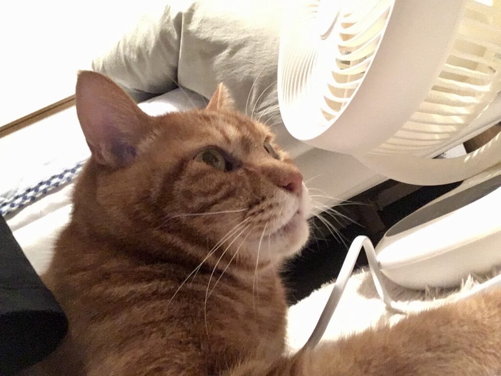 扇風機の前を陣取るむぎさん猫の記憶力にはドーパミンが関係していることをご存知ですか?