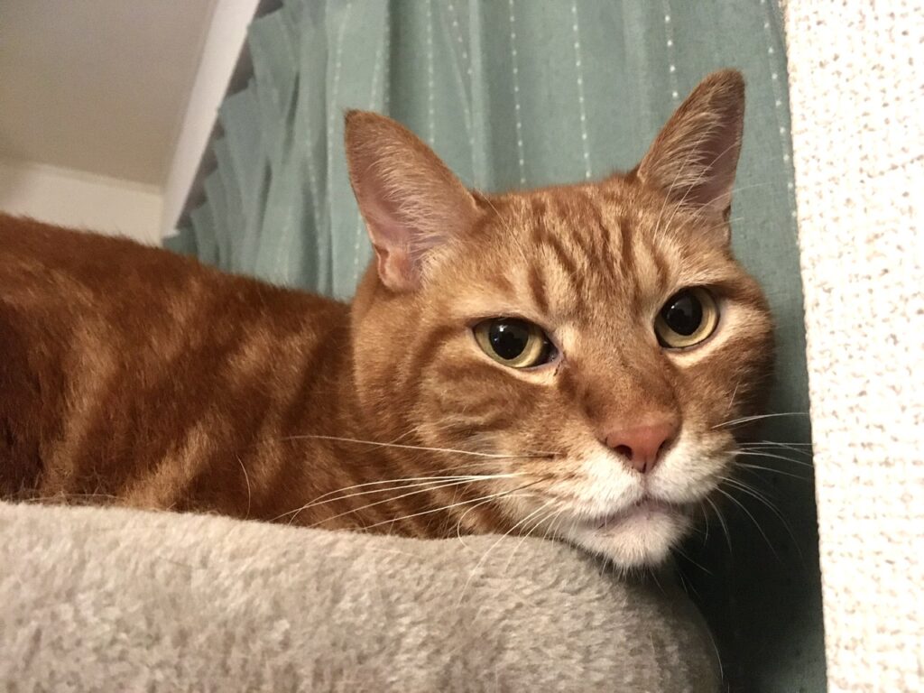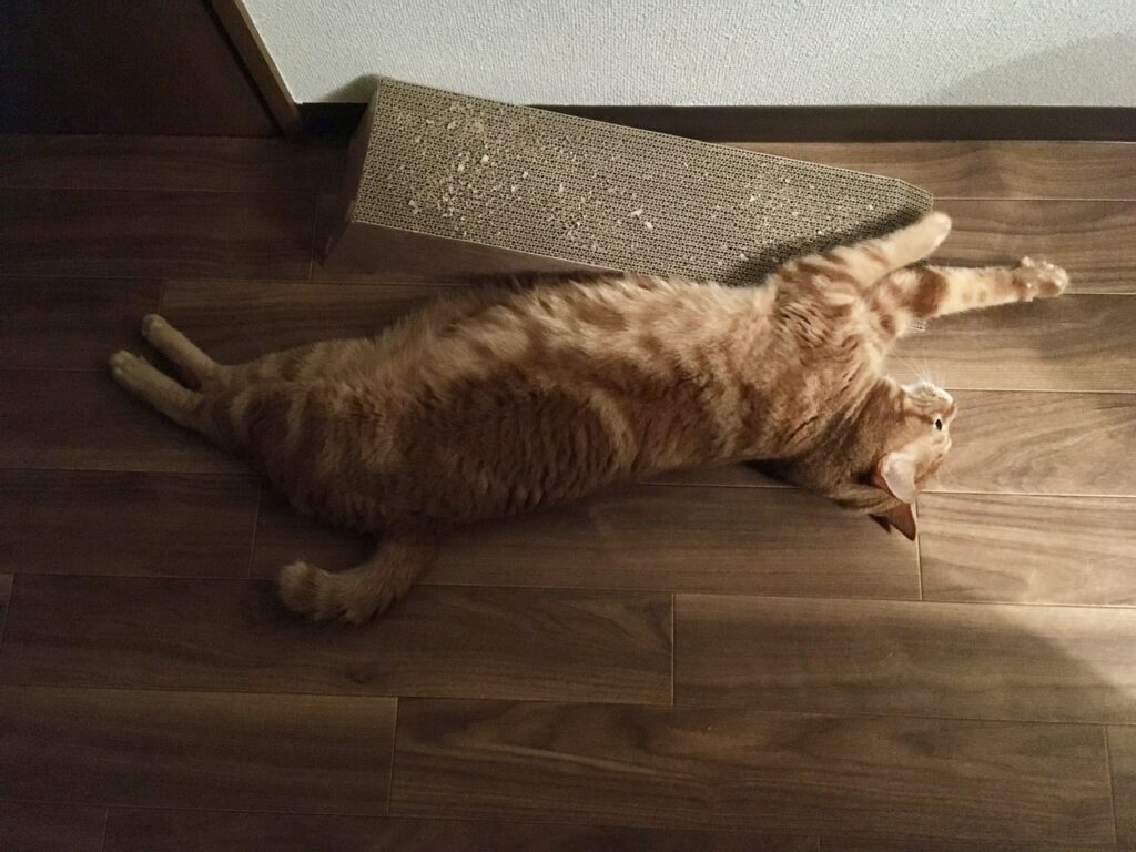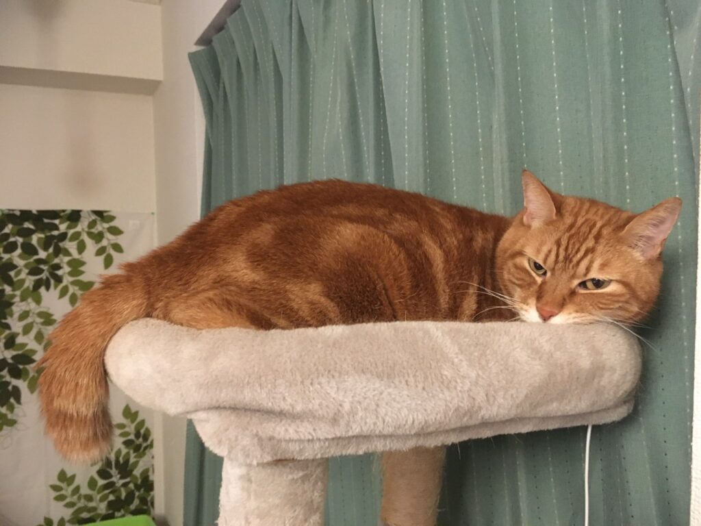 …ともっともらしいことを書いておいてなんですが、この日キャットタワーの向きを変えたんです。もしかしたらその影響で、目新しさを感じてタワーで寝ていたのかもしれません(笑)