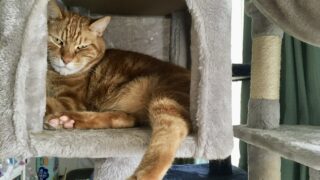 むぎさんがしばらくぶりにタワーで長い時間寝ていました。