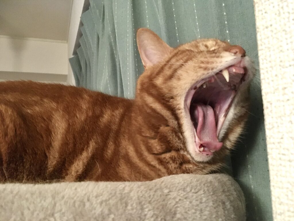 そういえばこの日は除湿器を使っていたので、高いところの空気の方が乾いていて好みだったからタワーで寝ていたのかも。