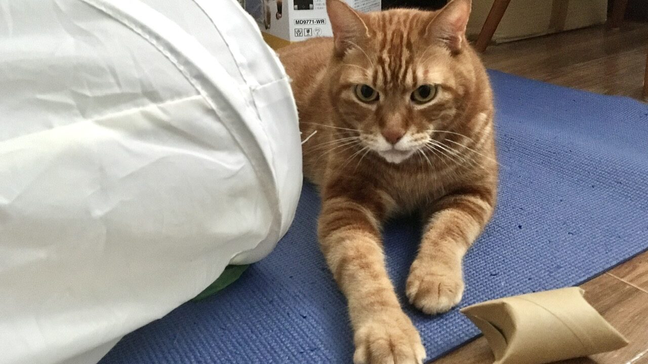 スーツに着替えると「どこかに行く日」とむぎさんも察知するのですが、それに加えて「いつもとなんか違う」と感じた様子でこの表情です。