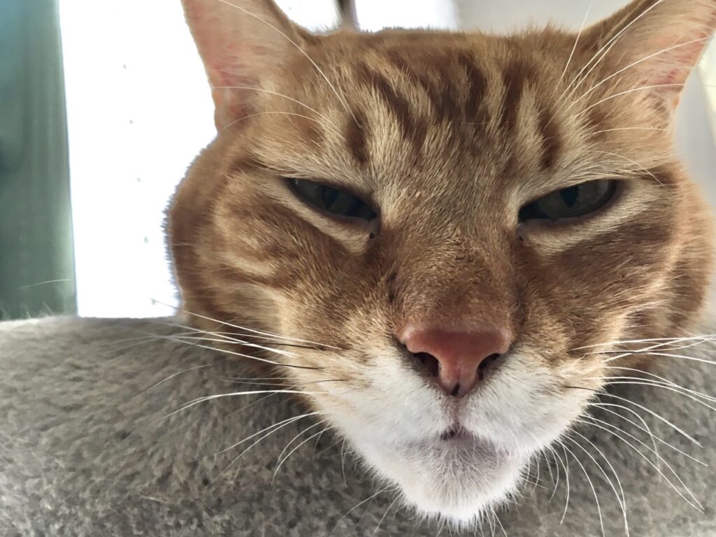 茶トラの「赤」の遺伝子があると、年齢とともに黒いスポットが瞼や唇、鼻にも現れるようになるんだとか。