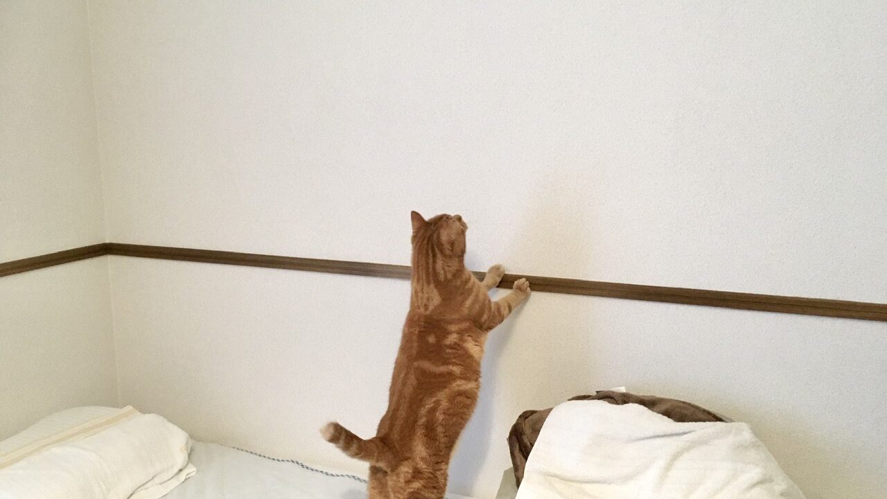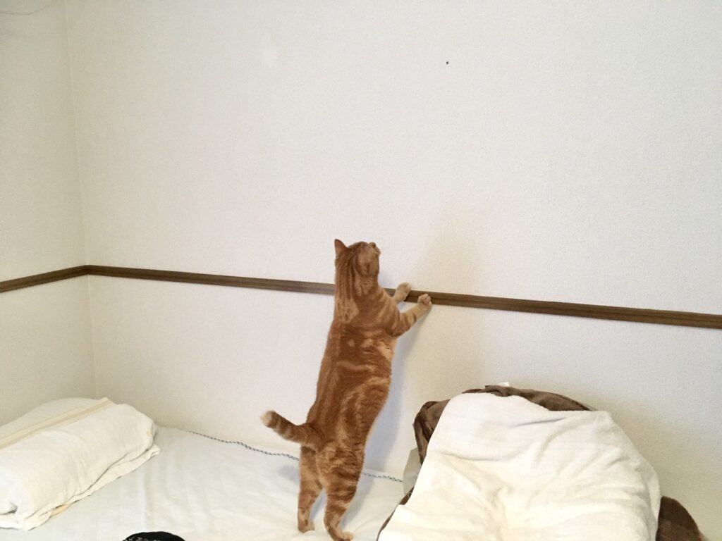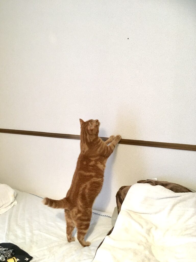 そんなこの日、朝から壁を這うハエトリさん(クモ)を見つけてウッキウキなむぎさん。壁に添えたおててが可愛すぎる。