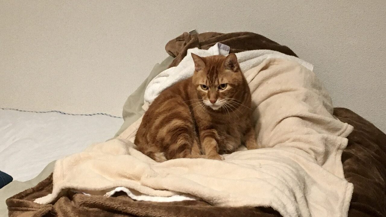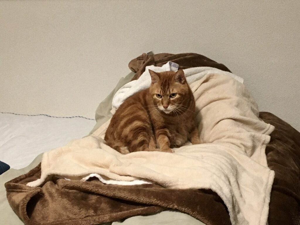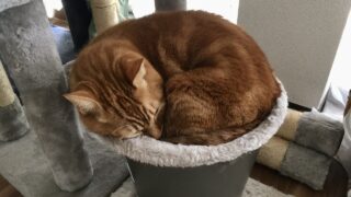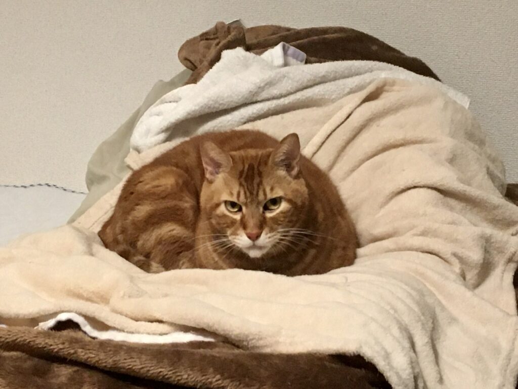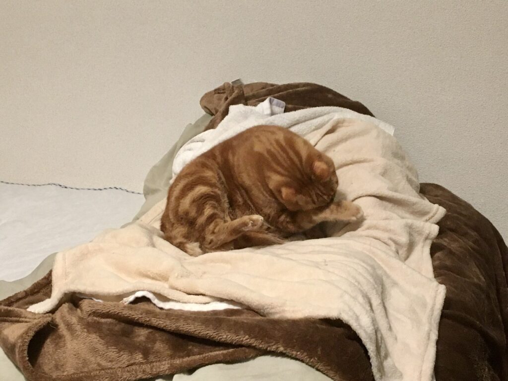 今日も雨で寒い東京です。むぎさんは一日中布団の上で丸まって寝ていました。