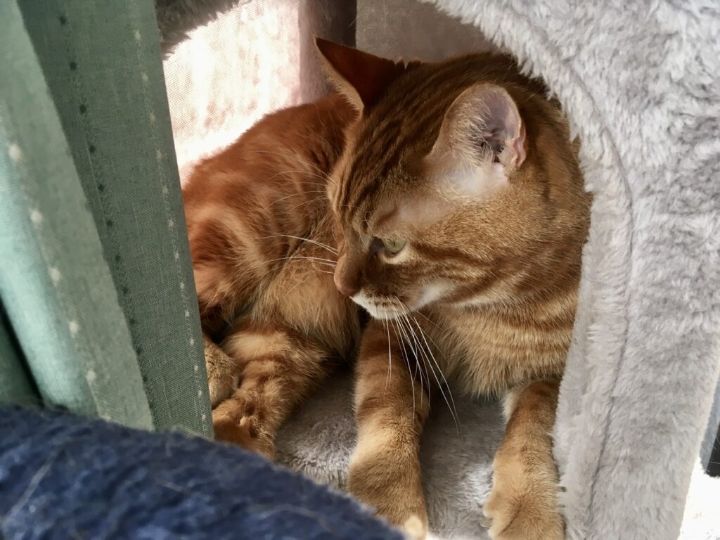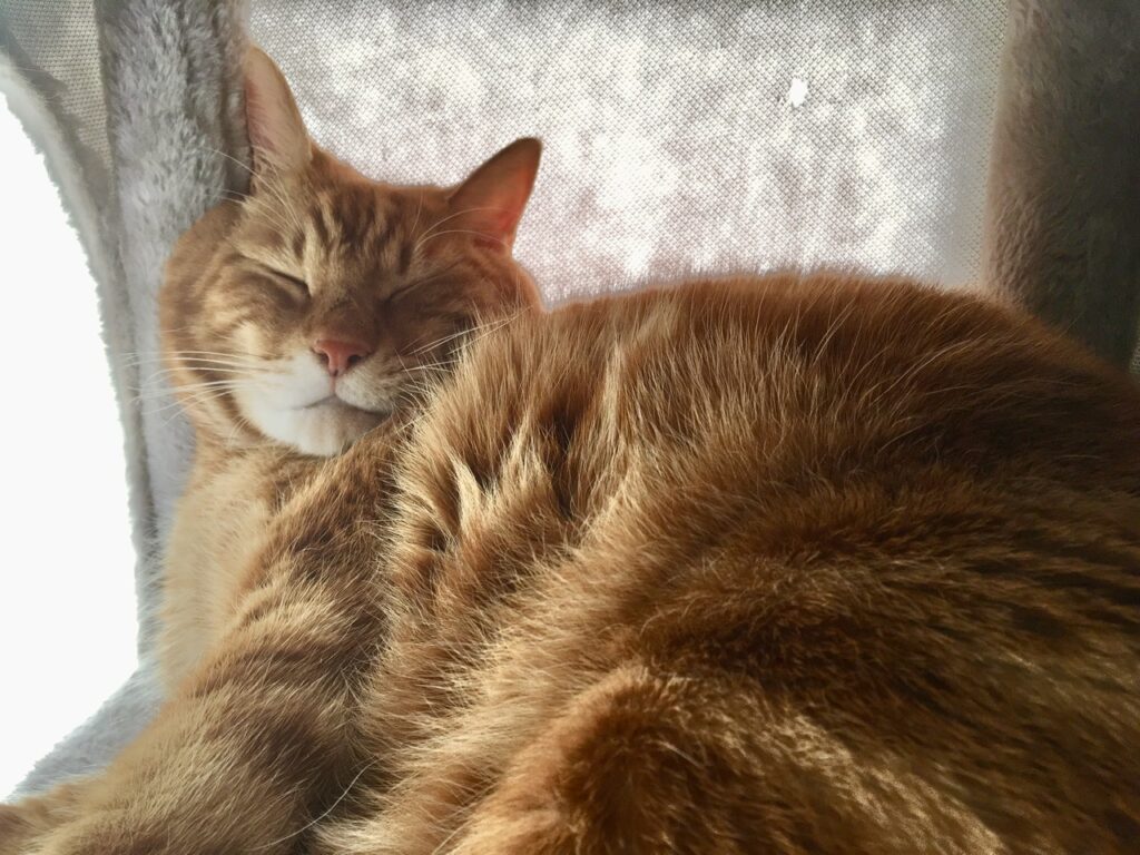 その一環として、むぎさんがキャットタワーで暖を取りながら寝られるように、位置を調整してみました。太陽光を取り込みつつ、窓からの冷気は遮る。そんなちょっとした温室のような空間をイメージ。