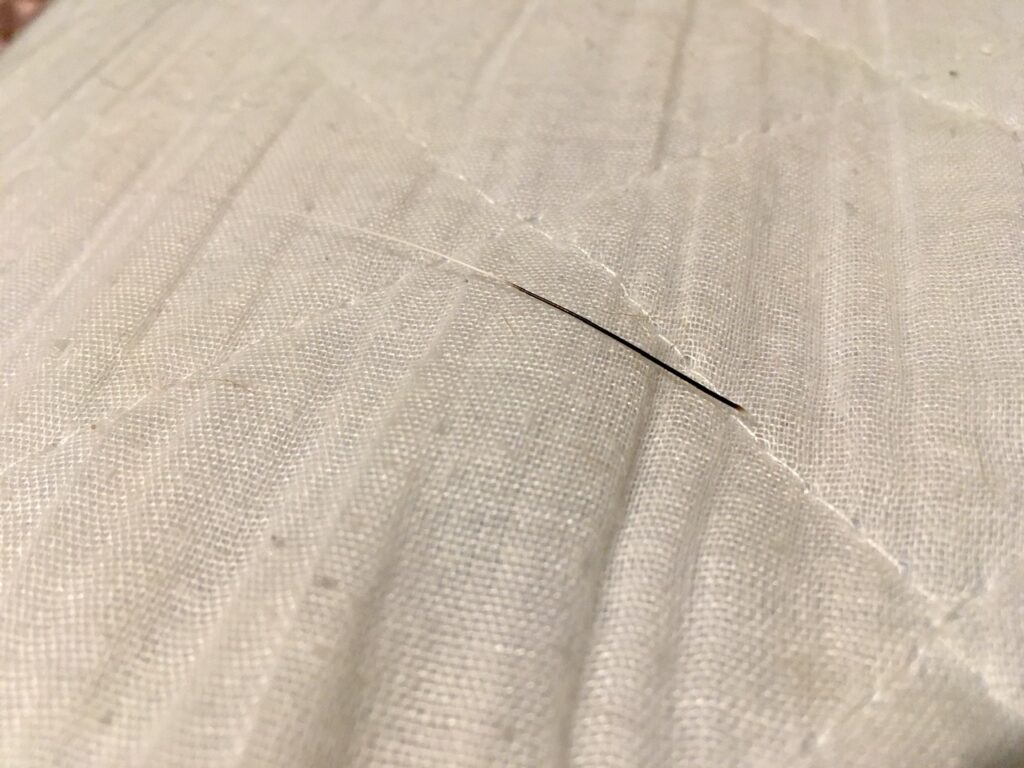 そしてむぎさんの寝床にやけに太くて短い髪の毛が落ちているなあと思いながら拾うとそれは根元が半分黒いおヒゲでした。