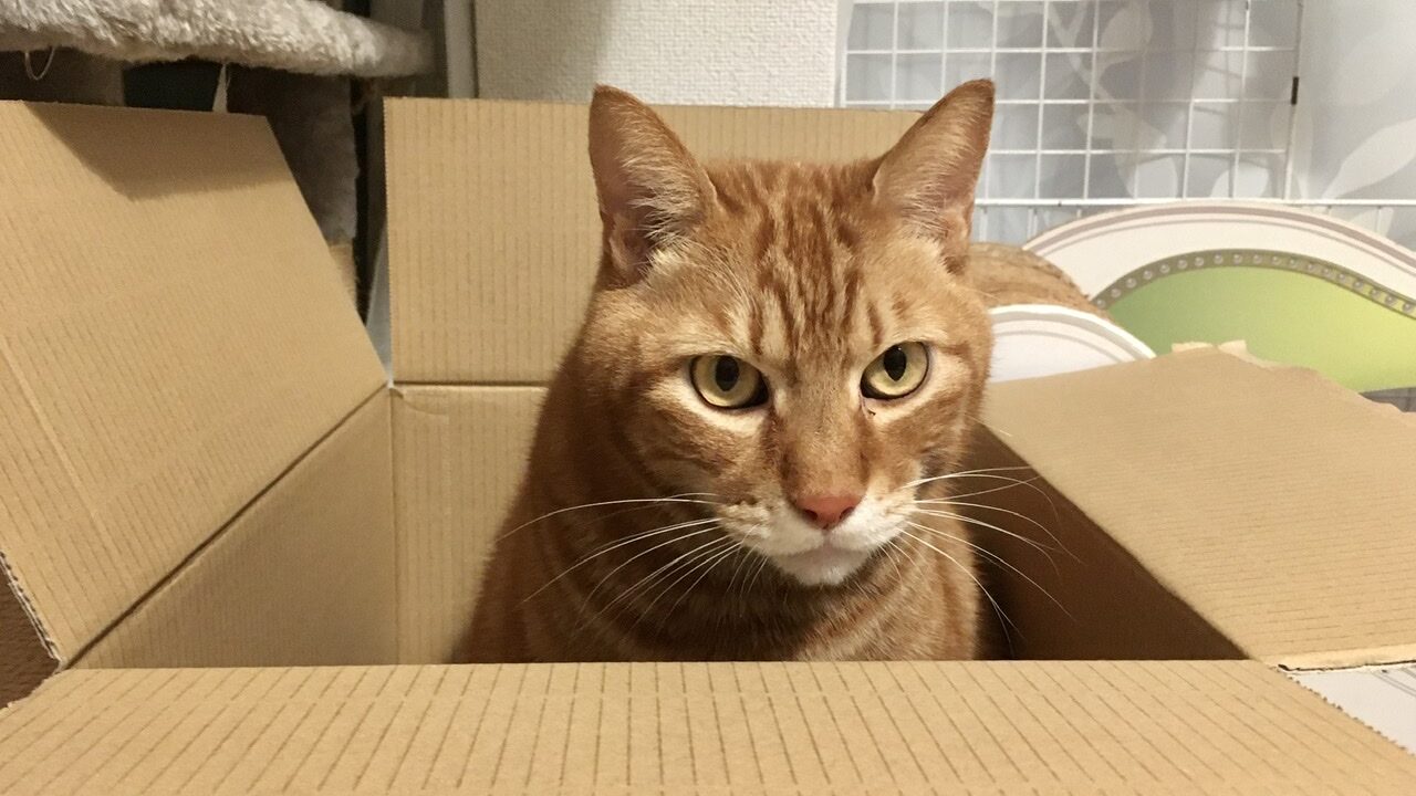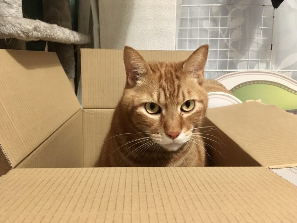 久しぶりの新しい段ボール箱に早速イン