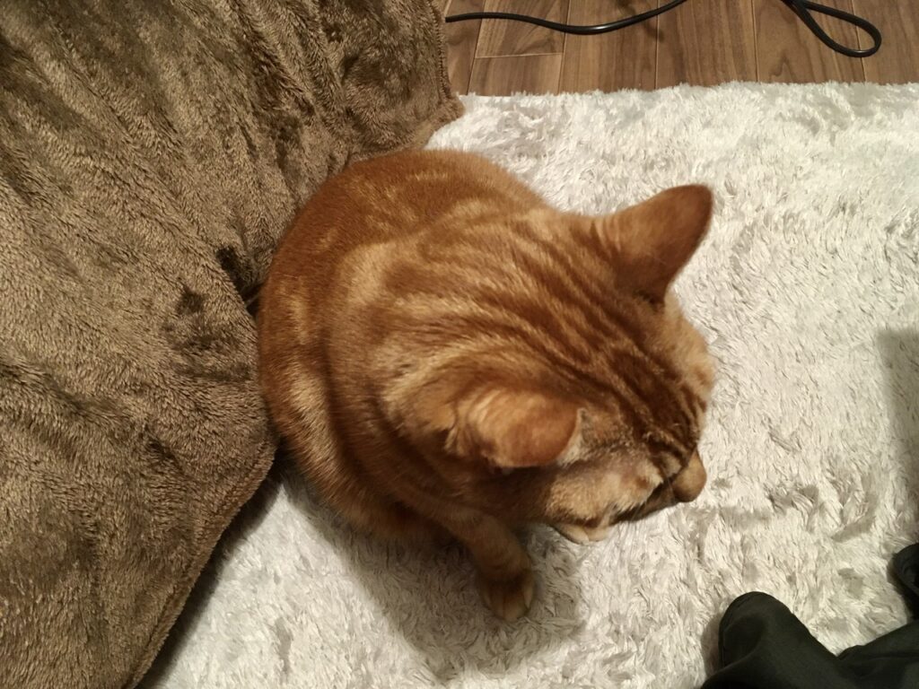 そしてベッドから降りホットカーペットの上へ。