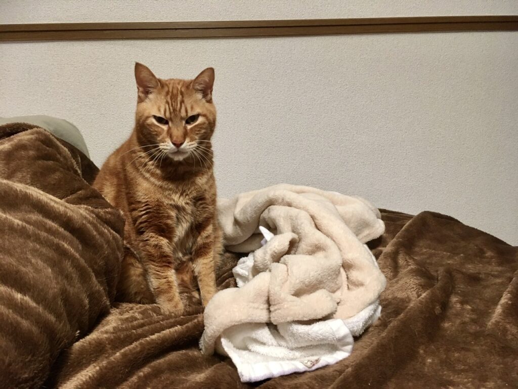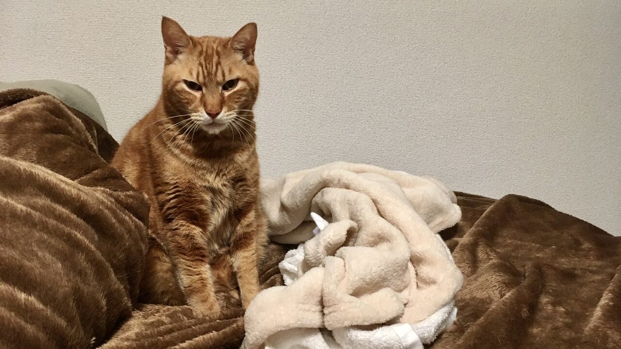 そこでベッドで寝ていたむぎさんに「ホットカーペットつけたよ~」と声をかけると…