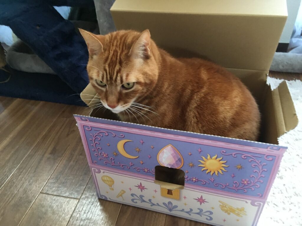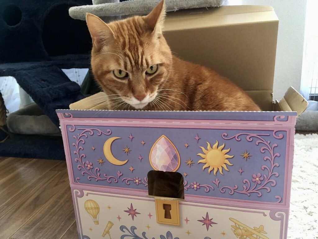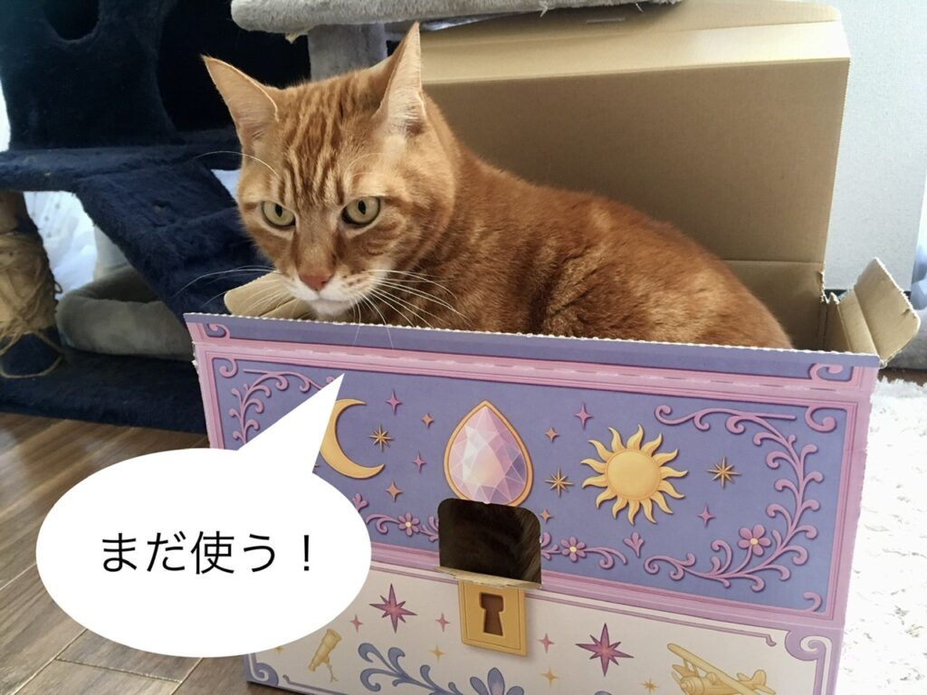 おもちゃや箱を捨てようとした途端興味を持ち始める。猫あるあるですね。