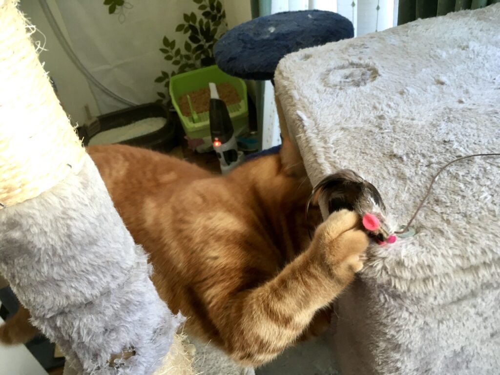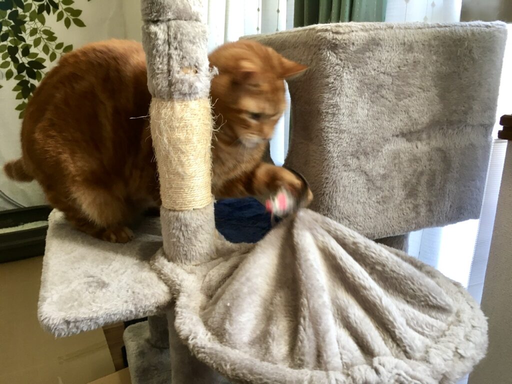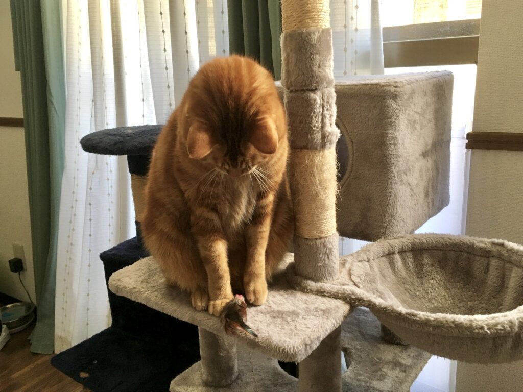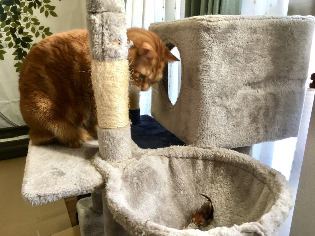 組み替えて安定性を出したキャットタワーがいい遊び場になっています。