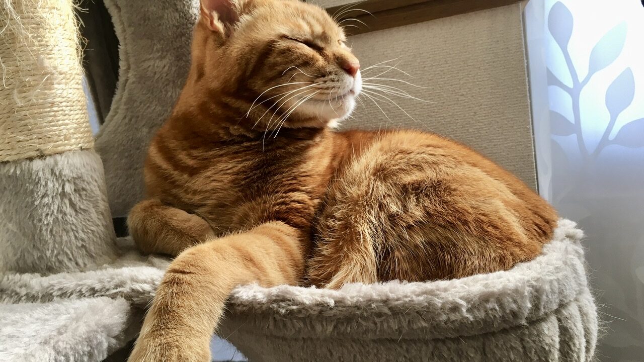 今日も日差しに恵まれた日となりました。日の当たるところで丸くなり、熱を蓄えるむぎさん。