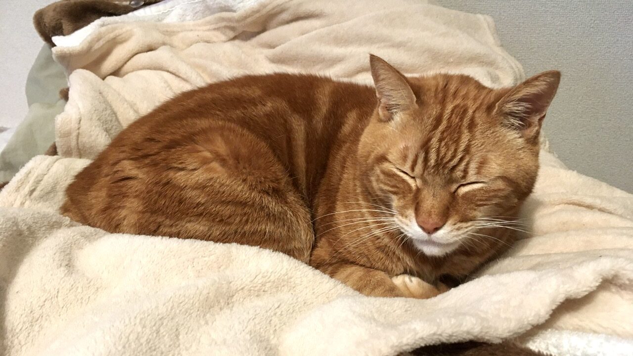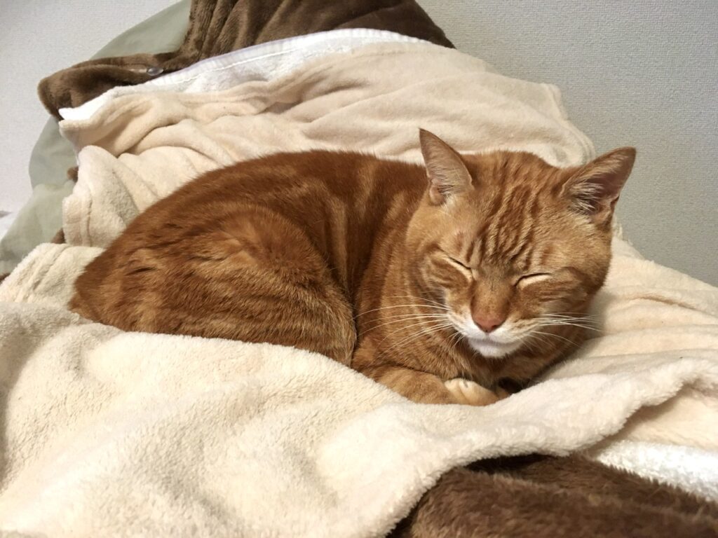 私とたぶんむぎさんも断然ホットカーペット。エアコンは空気が暖かくなるけれど、足元は暖かくなりづらいので末端冷え性の人間にも、床の近くで過ごすむぎさんにとっても、ホットカーペットの上というのは最高の場所です。