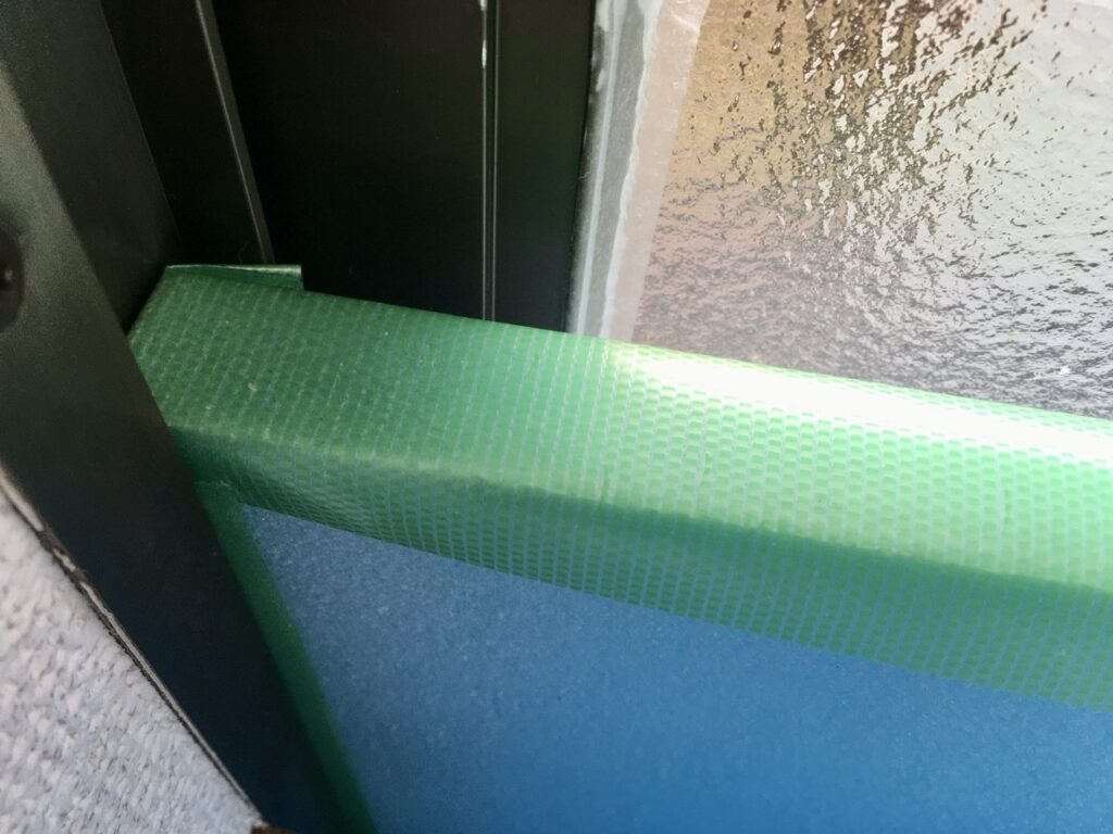 いかにも爪とぎをしやすそうな素材なので、むぎさんがこれで爪を研がないように、手前にプラダンを立ててビニールカーテンでさらに覆っています。