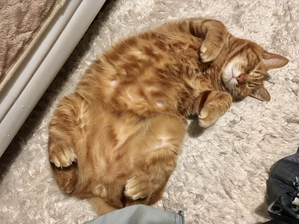暖かい土曜でむぎさんのヘソ天も絶好調。
