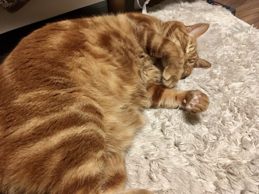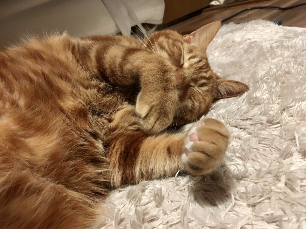 切れていたホットカーペットをつけたらご覧のとおりほくほくな寝顔を見せてくれました。かわいい〜。