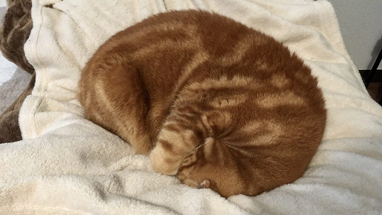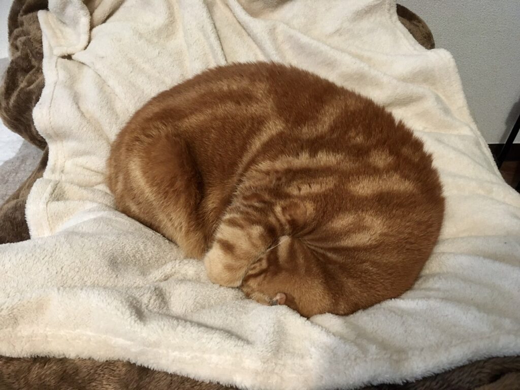 むぎさんも熱を逃さないようにキュッと密に丸まって寝ております。